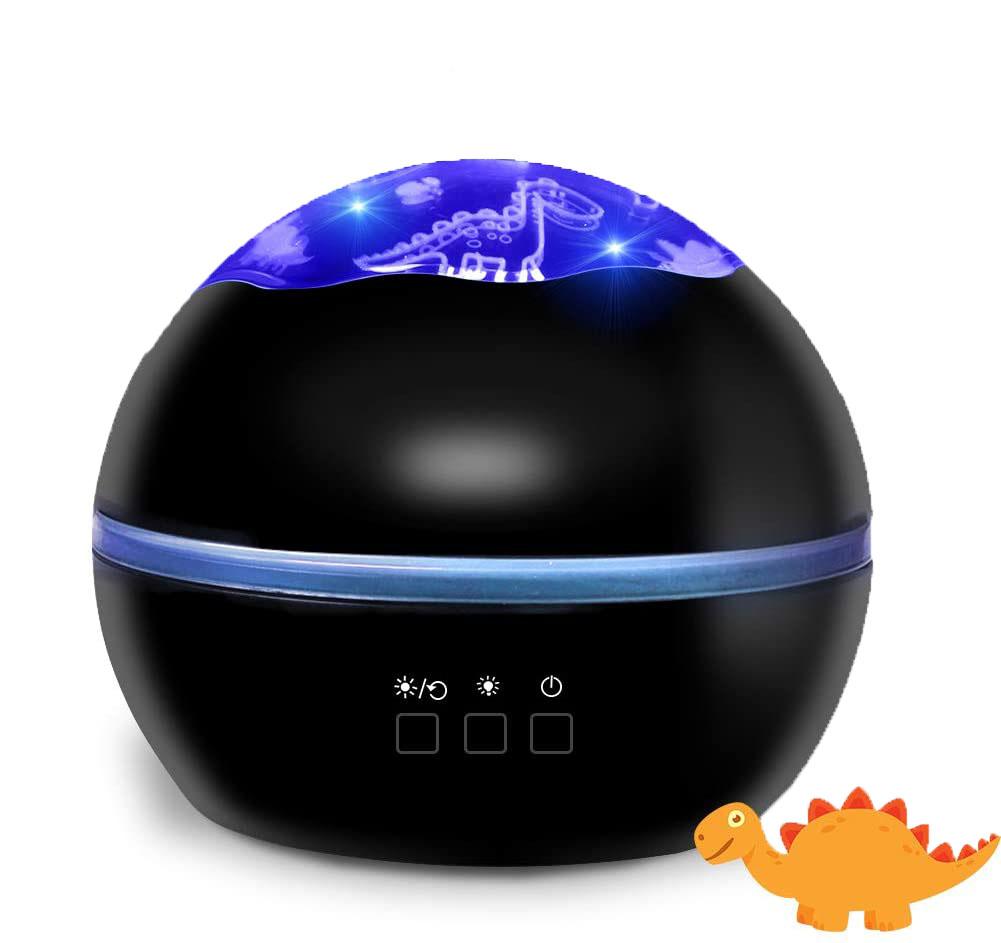 Questa lampada proietta immagini di dinosauri come Tirannosauro, Triceratopo, Brachiosauro e Pteranodonte. Ha due modalità di funzionamento: proiezione e luce notturna. Con 9 colori a scelta, crea un'atmosfera magica per i bambini.