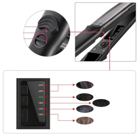 • Instelbare temperatuur tot 230°C om zich aan te passen aan alle haartypes.